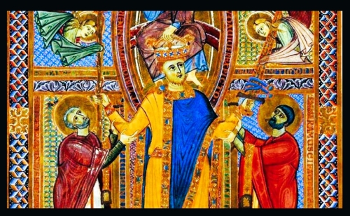 König Heinrich II wird 1014 in Rom zum Kaiser gekrönt. Detail aus einem Krönungsbild