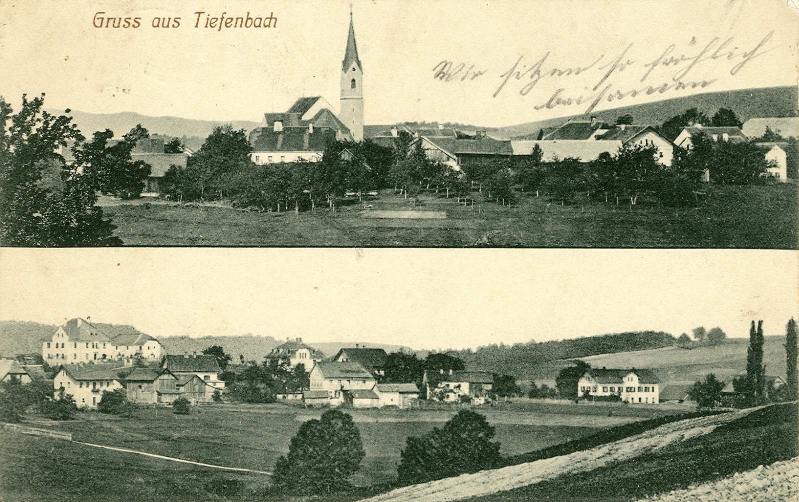 Neben der Ortsansicht von Tiefenbach ist im kleinen Ausschnitt die Handlung von Joh. Schwaiberger zu sehen.