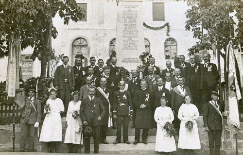 Am Pfingstsonntag, den 5. Juni 1922 war nach dem Festgottesdienst und Aufmarsch der Vereine die Enthüllung und Weihe des Kriegerdenkmals durch Pfarrer Michael Arbinger im schwarzen Ornat, wobei die Sterbeglocke geläutet wurde. Geschaffen wurde es von den Brüdern Kaspar, Ludwig und Mathias Söldner aus Stützersdorf.