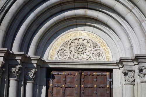Das ist die "Pforte zum Himmel" steht über dem Portal der 1893 fertiggestellten kath. Pfarrkirche St. Vitus.