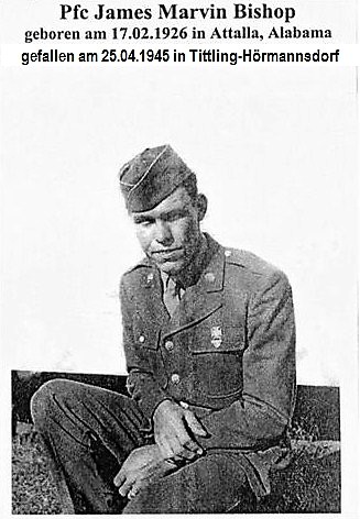 Marvin Bishop hatte von den US-Militärbehörden erfahren, dass sein Vater James Marvin Bishop rund eine Meile nördlich von Tittling an der früheren B 85 schwer verwundet wurde und an seinen Verletzungen verstarb. Bis auf den linken Arm waren alle Knochen gebrochen. Bei seinem Tod war der aus Alabama stammende James M. Bishop 19 Jahre alt.