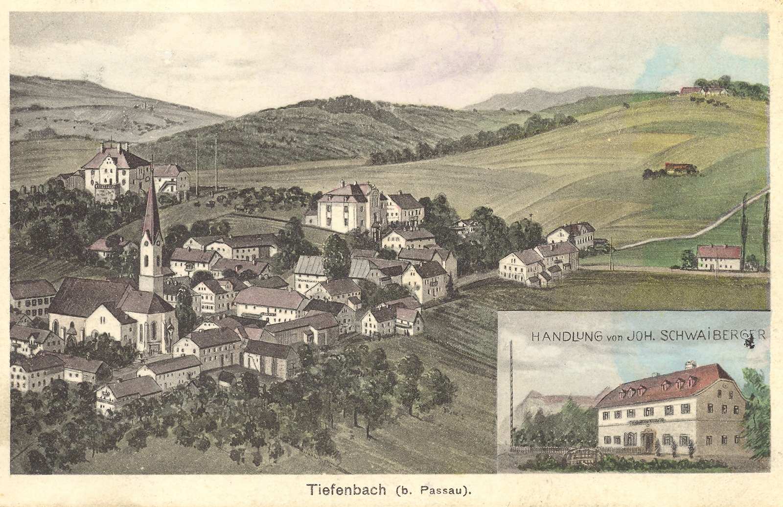 Neben der Ortsansicht von Tiefenbach ist im kleinen Ausschnitt die Handlung von Joh. Schwaiberger zu sehen.