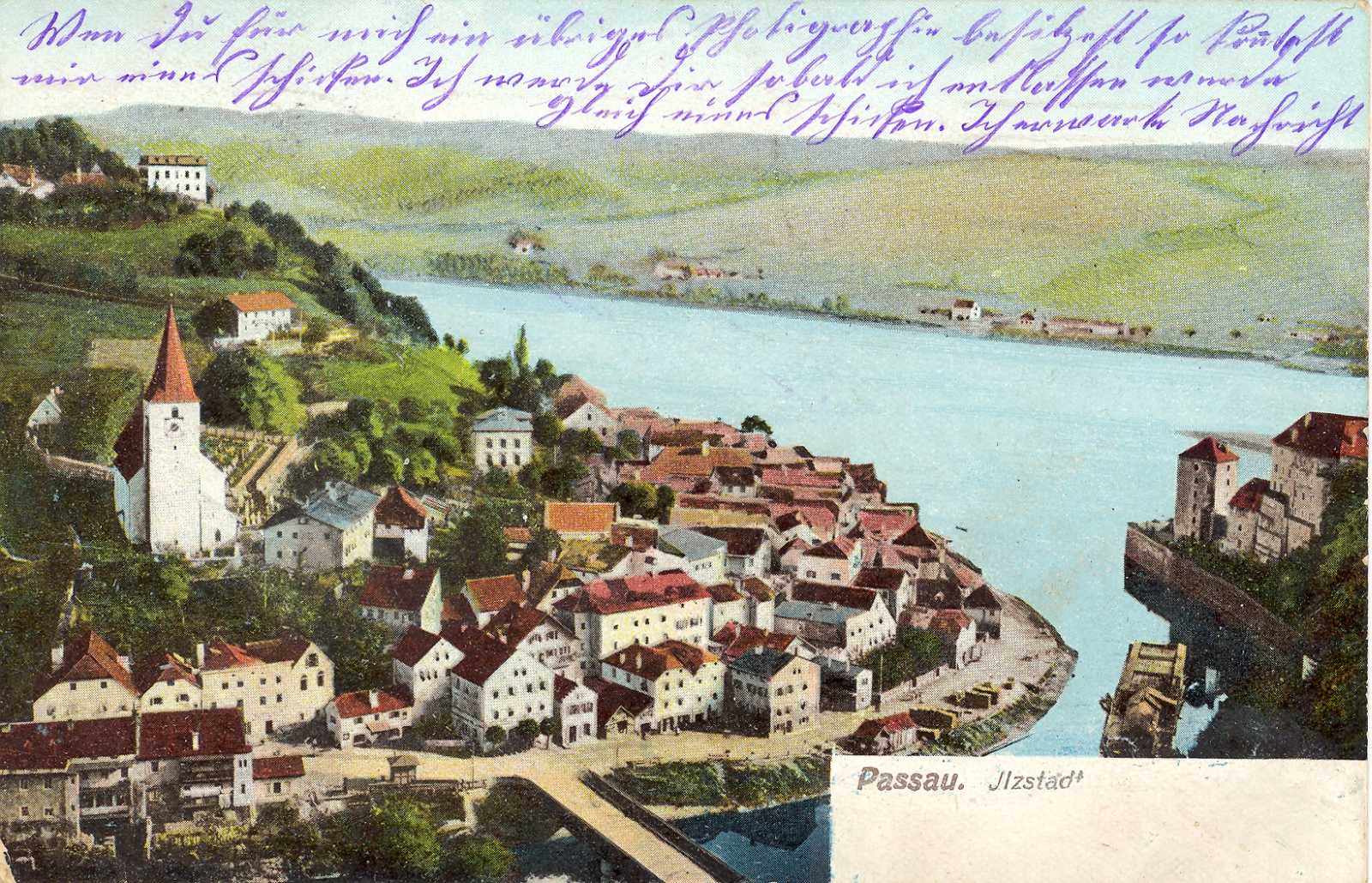 Die aus dem Bayerischen Wald kommende Ilz mündet in die Donau. Die Karte erschien im Verlag Ottmar Zieher, München.