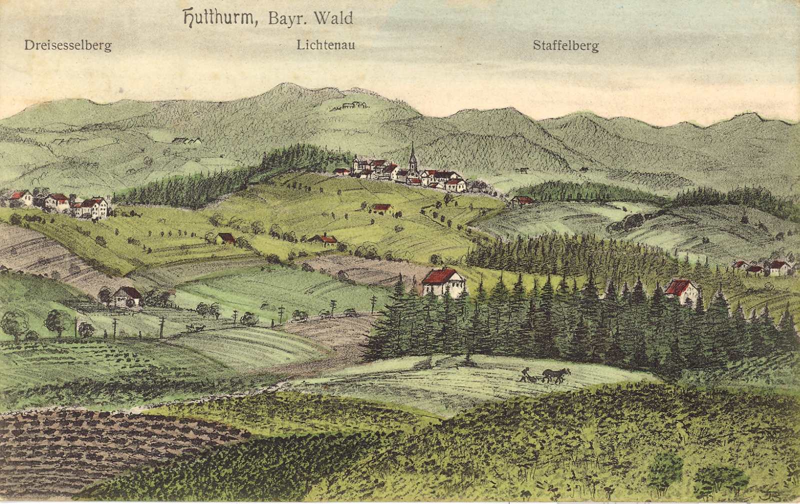 Die vom Verlag Pernat aus München verlegte Ansichtskarte wurde vom Kaufmann J. Gahbauer, Hutthurm vertrieben.