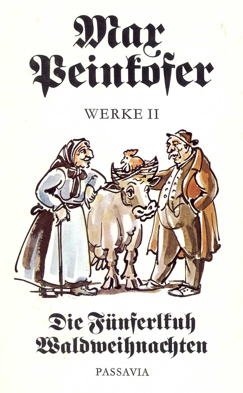 Max Peinkofer, Werke II, „Die Fünferlkuh“, „Waldweihnachten“ und weitere Geschichten und Gedichte. Dieser Auswahlband beinhaltet die beliebtesten aus Hunderten von Peinkofers Geschichten und Gedichten. Alle Geschichten Peinkofers haben einen realen Hintergrund. Max Peinkofer hielt viele Ereignisse des waldlerischen Lebens, Ernstes und Heiteres, in unnachahmlichen Worten fest.